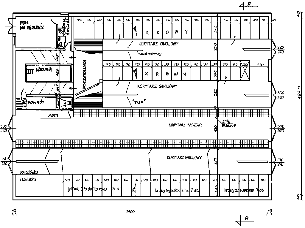 - A - obsada zwierząt w budynku (docelowo 60 krów)